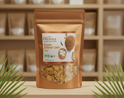 Crunchy chips made from fresh Sri Lankan coconuts, processed without roasting or added sweeteners to preserve their natural flavor and nutrients. These raw coconut chips deliver a clean, mild coconut taste and a satisfying crunch. Ideal for healthy snacking, smoothie bowls, baking, salads, and breakfast toppings. A pure, wholesome tropical snack for everyday wellness.
